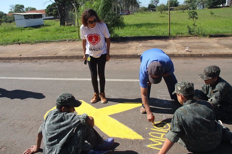 Na última segunda-feira (8), foi a vez das 60 crianças do Pelotão Mirim, integrantes do Serviço de Convivência e Fortalecimento de Vínculos, contribuírem com os trabalhos em favor do trânsito. Oito laços foram pintados no asfalto, nas ruas Duque de Caxias e João Gonçalves Oliveira, pelos próprios alunos que, muito envolvidos, puderam aprender e gerar educação no trânsito.