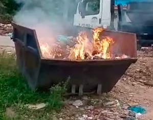 CRIME – Caçamba do Mutirão da Limpeza é incendiada no Jupiá