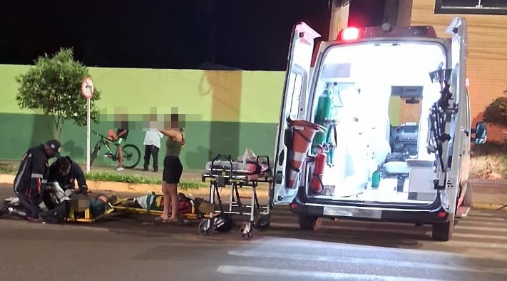 O acidente envolveu um motociclista e um ciclista, que acabaram se chocando no cruzamento. Com o impacto, ambos caíram ao solo e sofreram escoriações. Equipes do SAMU foram acionadas e encaminharam as duas vítimas para uma unidade de saúde, onde receberam atendimento médico.