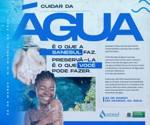 E, para o despertar dessa consciência ambiental, assim como em outros anos, a Sanesul lança mais uma campanha de uso consciente da água nas comunidades e, durante a semana do Dia Mundial da Água 2022, irá promover palestras educativas nas escolas dos municípios. Haverá peça teatral com o tema água e distribuição de cartilhas educativas para os alunos.