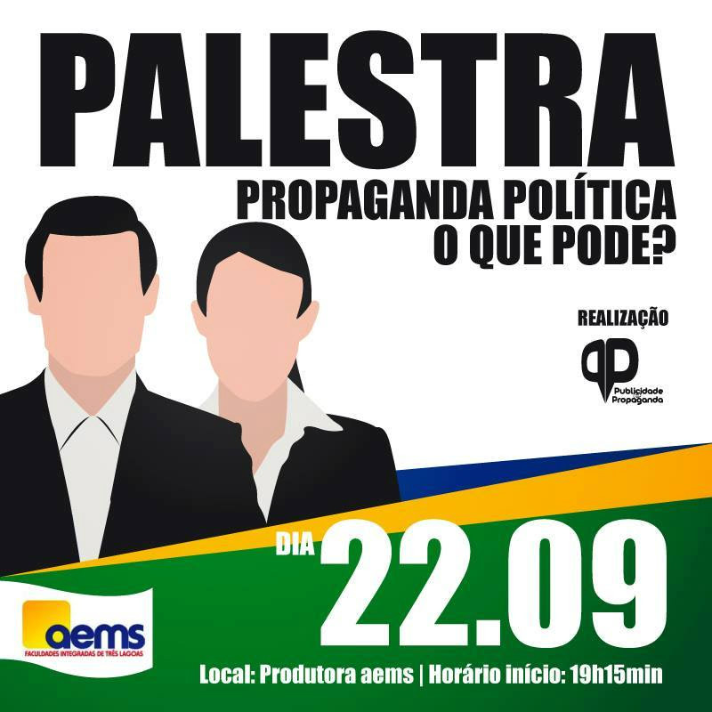 O curso de publicidade e propaganda da AEMS organizará na próxima quinta-feira (22), às 19h15, a palestra “Propaganda Política, o que pode?”. A aula será ministrada pelo advogado e docente Francisco Arrais e será aberta ao público externo.