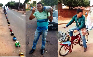 A diferença era que ao invés de seus eleitores estarem em veículos de verdade, a carreata foi feita com vários carrinhos de brinquedo.