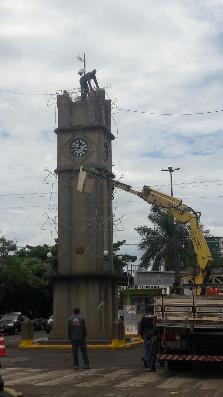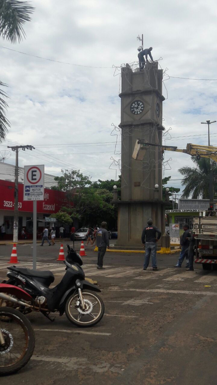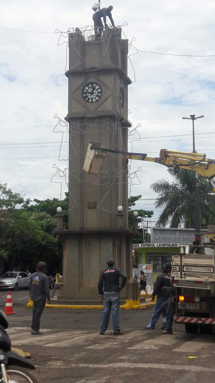 A montagem dos equipamentos já foi concluída e será inaugurada na noite desta quarta-feira (30), porem o que o que chamou a atenção de muitos três-lagoenses que passavam pela região, durante a instalação da decoração, foi a falta de segurança proporcionada aos funcionários desta empresa, que foram flagrados em cima do relógio central, monumento que tem 10 metros de altura, colocando os anjos luminosos sem utilizar os EPI (Equipamento de Proteção Individual) exigidos para trabalhos em altura.