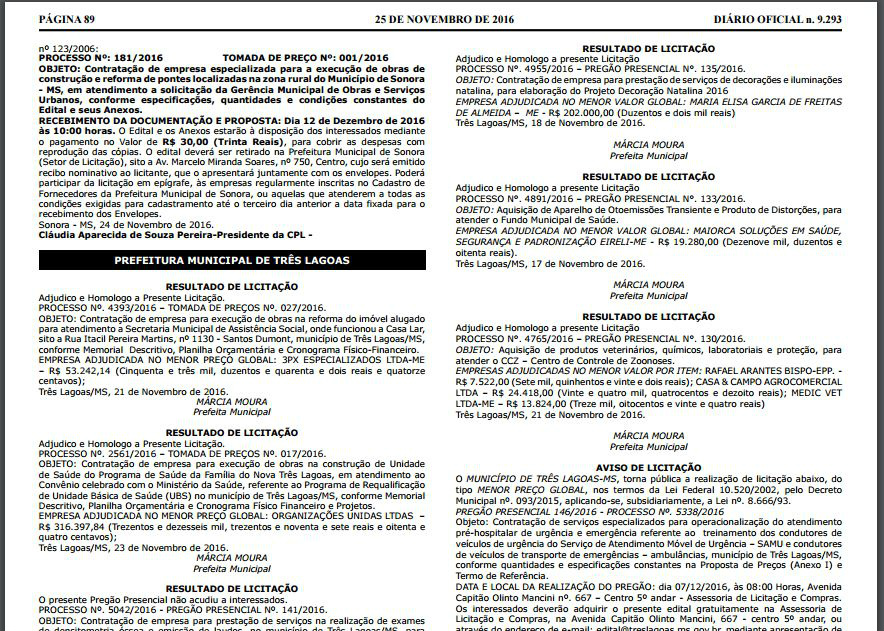 leia na integra a publicação do diário oficial do dia 25 de novembro de 2016