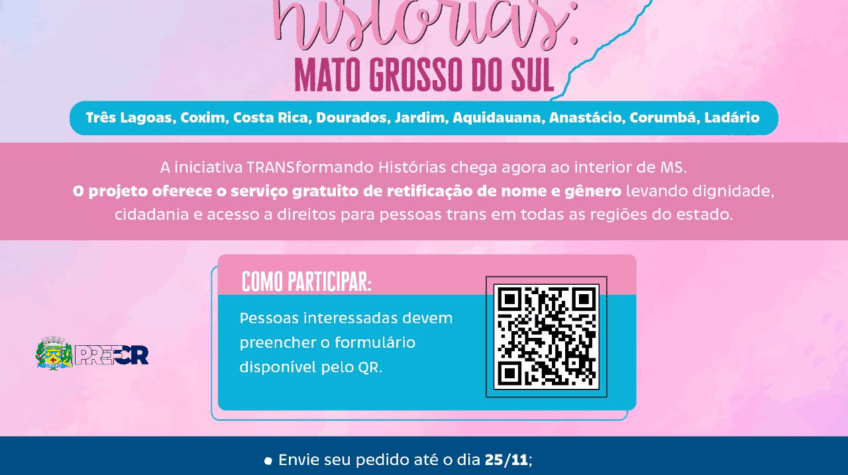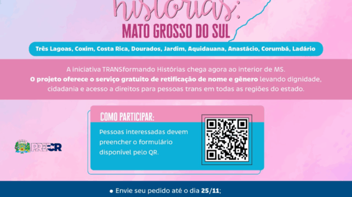 A Defensoria Pública de Mato Grosso do Sul (DPE-MS) está expandindo para o interior do estado o projeto “TRANSformando Histórias”, que garante serviço gratuito de retificação de nome e gênero para pessoas trans. A ação busca promover dignidade, cidadania e acesso a direitos em todas as regiões sul-mato-grossenses.