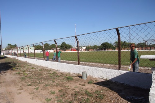 Uma equipe do Departamento de Obras está, desde o último sábado (24), realizando um mutirão no Estádio da ADEN. Os trabalhos incluem limpeza, pintura das paredes externas, muretas, guias, paredes da quadra poliesportiva. Também foi feita a distribuição de cascalho em partes do terreno do estádio.