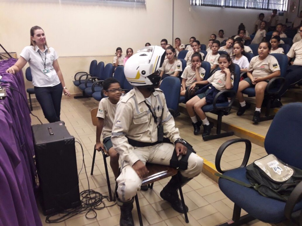 A parceria entre o Departamento Municipal de Trânsito e o Detran, que se deu a partir do pedido do prefeito Angelo Guerreiro, proporcionou a realização do evento. Os alunos da rede pública ouviram orientações de normas de circulação e segurança.