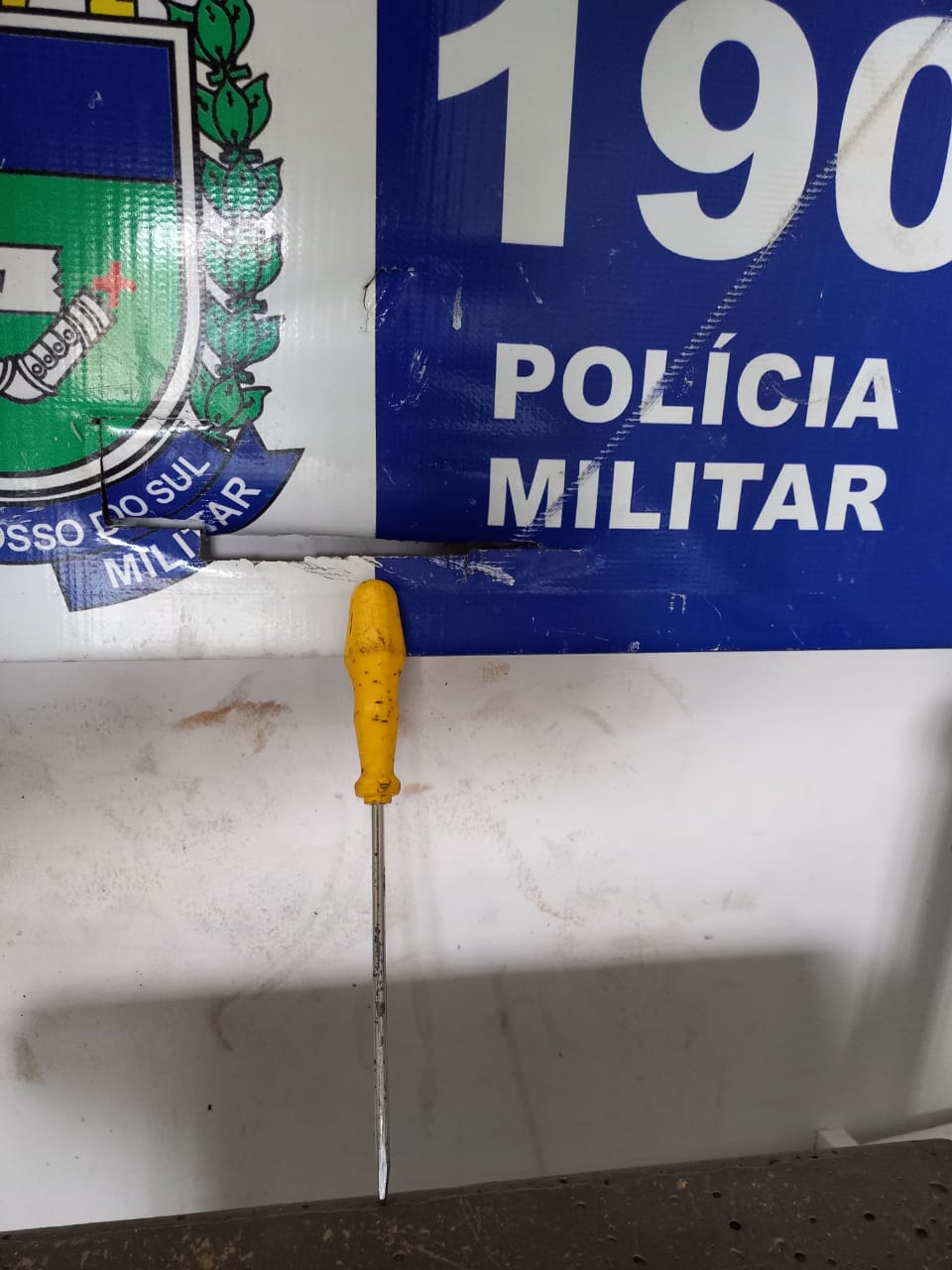 Uma equipe policial foi acionada via COPOM no local, onde um homem de 47 anos em uma briga, teria desferido um golpe com uma chave de fenda nas costas de um outro homem de 59 anos.