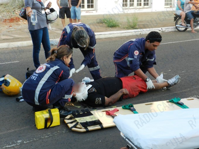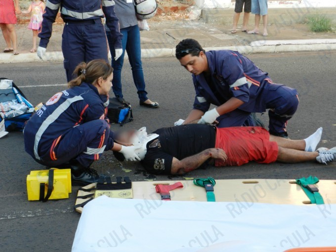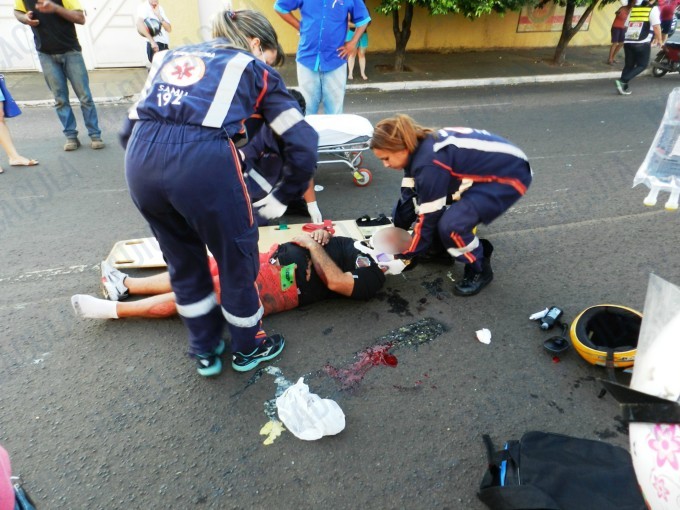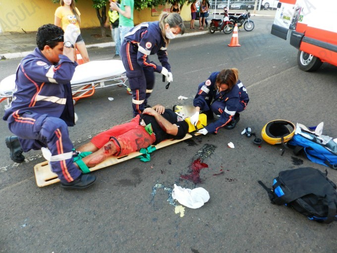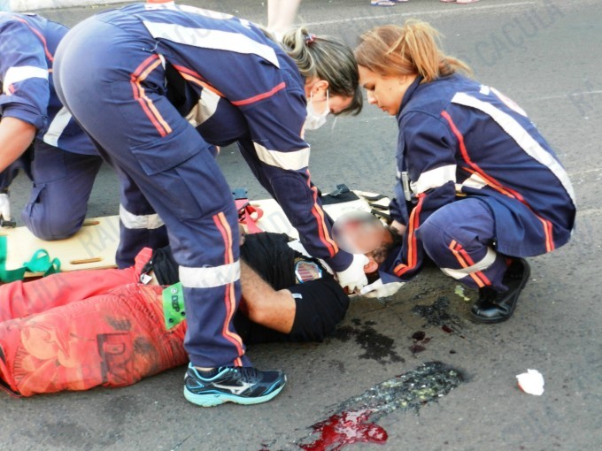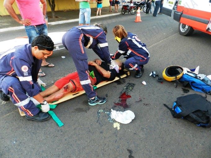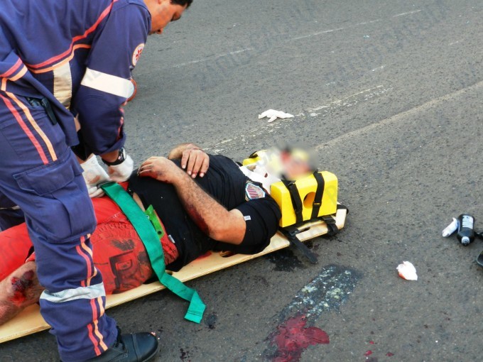 O motociclista ficou bastante ferido com a queda.