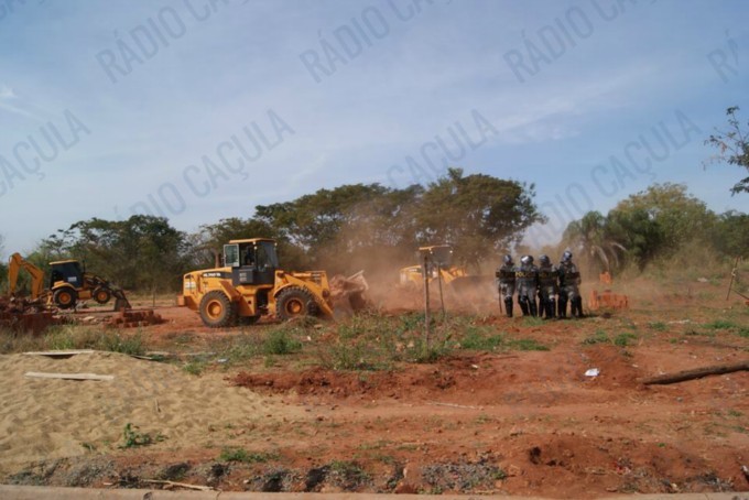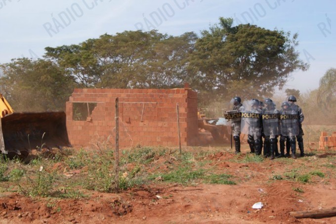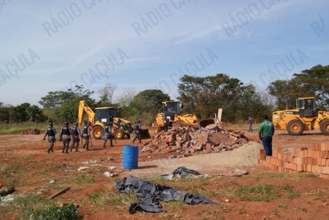 A reintegração aconteceu na manhã de hoje, as famílias que ocupavam o terreno já haviam construído ou iniciado construções na área, e foi necessário que tratores e máquinas demolissem as casas.