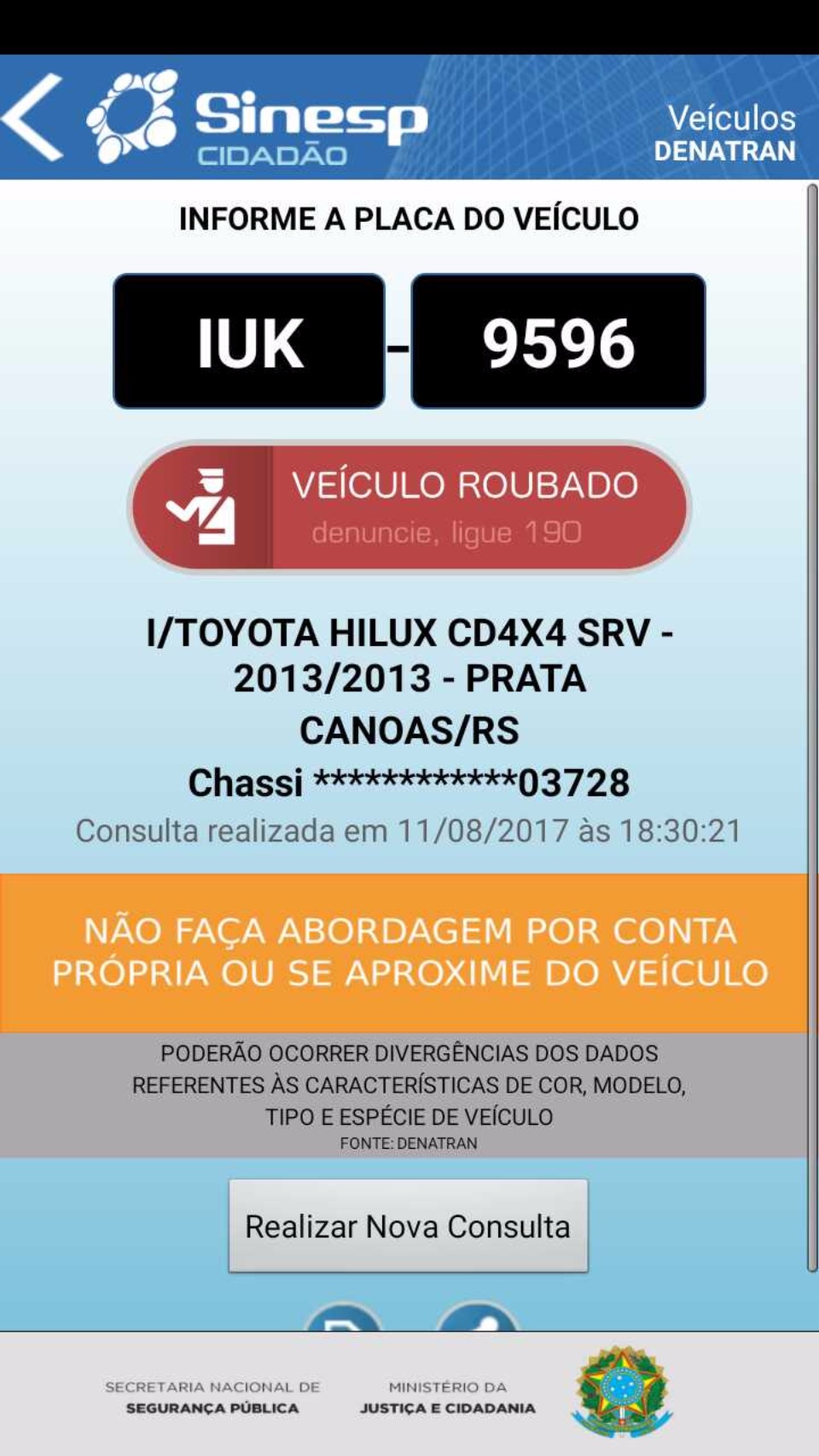 A abordagem foi realizada em um posto de combustível, há 500 metros da base da PRF. A equipe vistoriou a caminhonete suspeita e identificou sinais de adulteração, sendo que o chassi correspondia a um veículo roubado em maio de 2017.