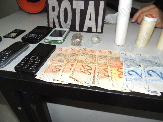 Também foi apreendido no decorrer da ocorrência, celulares, petrechos para embalo de entorpecentes e certa quantia em dinheiro