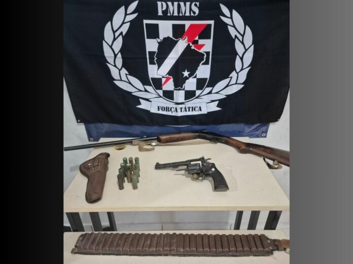Ainda durante a abordagem, o homem informou que possuía armas de fogo guardadas em casa e indicou onde elas estavam. No local, os policiais apreenderam uma espingarda calibre 20, com uma munição já deflagrada, e um revólver calibre .32, com capacidade para seis tiros.