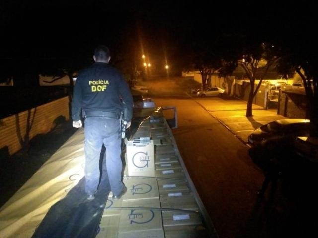 O veículo com placas de Toledo, PR, estava carregada com 1000 caixas de cigarros, um total de 50 mil pacotes, contrabandeados do Paraguai e sem a documentação de regularidade fiscal. O condutor Paulo Henrique da Silva Gonçalves, de 27 anos, apresentou notas falsas e, em princípio, mentiu sobre a carga que transportava afirmando ser alimento para gado.