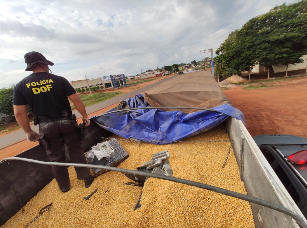 A droga estava sendo transportada em fardos em meio a uma carga de milho a granel. De acordo com informações do DOF, quando a carreta foi abordada, o motorista demonstrou muito nervosismo e, após revista, os fardos de maconha foram localizados.