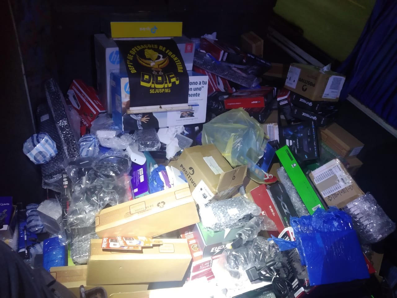 Policiais do Departamento de Operações de Fronteira (DOF) apreenderam na tarde de sexta-feira (15), por volta das 18h30, um ônibus de passageiro de cor branca carregado com mercadorias adquiridas no Paraguai, sem a documentação de regularidade fiscal.