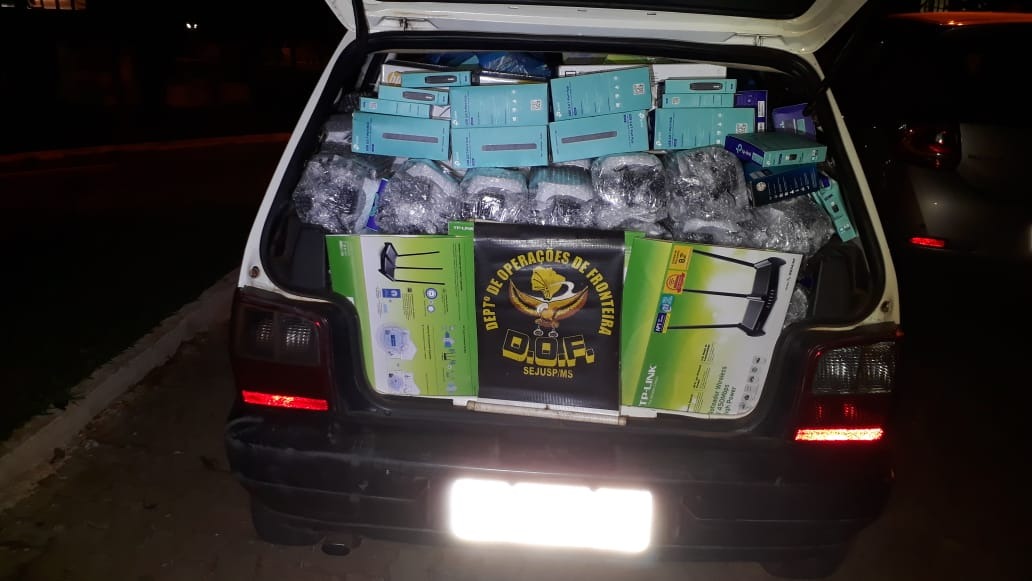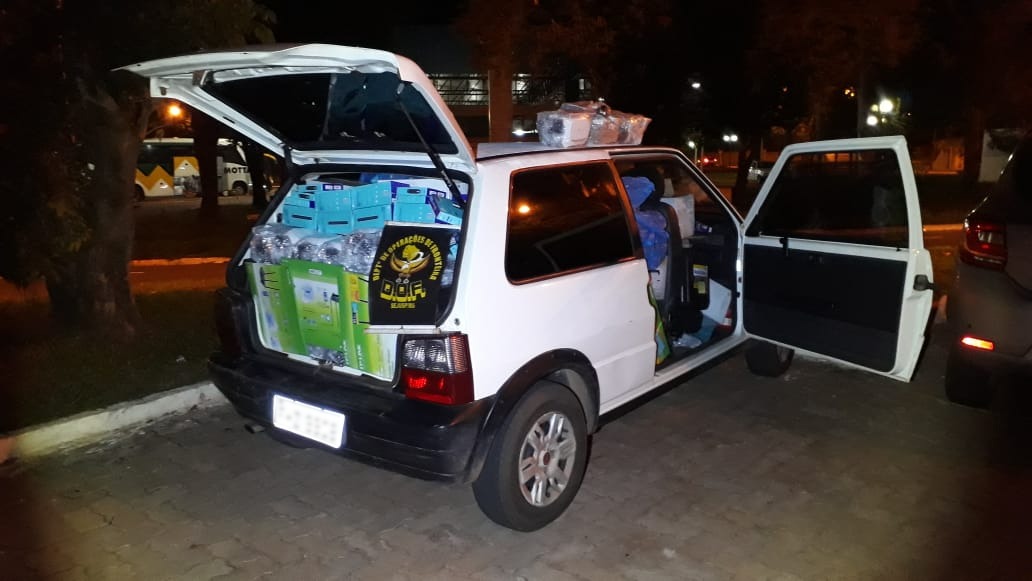 Policiais do Departamento de Operações de Fronteira (DOF) apreenderam na tarde de segunda-feira, por volta das 14h, um veículo FIAT/UNO MILLE WAY ECON de cor branca e placas de Bebedouro (SP) carregado com produtos eletrônicos adquiridos no Paraguai, sem a documentação de regularidade fiscal.