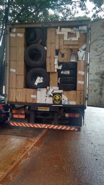 No Caminhão foi contabilizado uma carga de 700 caixas de cigarro, 28 pneus, além de produtos eletrônicos diversos.A Carga foi avaliada em aproximadamente 1,6 milhões de reais.