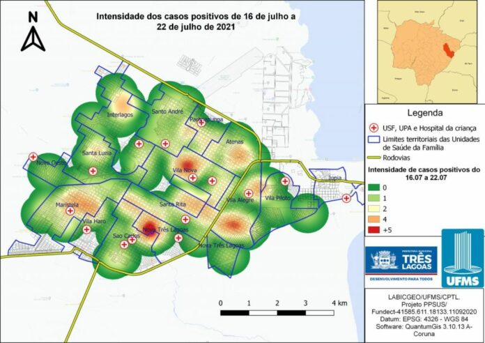 Nova Três Lagoas e Vila Nova são os dois bairros de Três Lagoas em que a incidência de casos positivos de Covid-19 estão em alta, é o que aponta o monitoramento realizado pela Vigilância Epidemiológica da Secretaria Municipal de Saúde (SMS), em parceria com o curso de Geografia da Universidade Federal de Mato Grosso do Sul (UFMS).