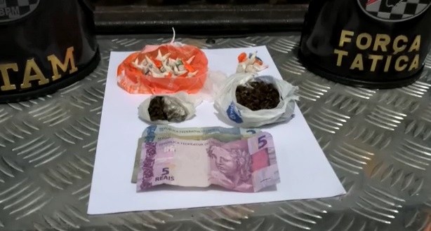 Nesse momento, as guarnições se deslocaram no mesmo sentido em que estava o carro suspeito, abordando os componentes do veículo na altura do número 2125 da mesma avenida. Durante a abordagem, foi encontrado com um dos suspeitos 10 porções de crack, totalizando 2,7gr já prontas para a mercancia, além de R$ 11 em dinheiro.