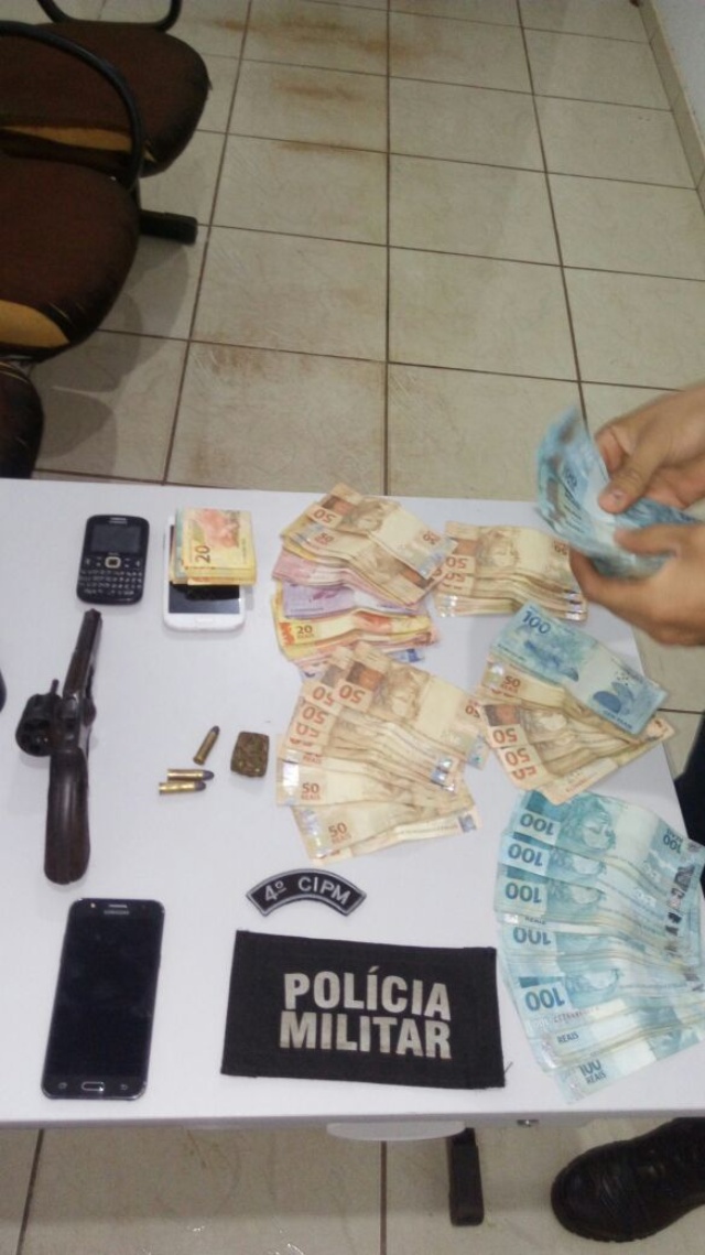 Enquanto trafegavam, perceberam a presença da polícia e iniciaram uma fuga, mas a guarnição teve êxito e apreendeu os bandidos. Os meliantes tentaram se desfazer do dinheiro e da substancia verde enquanto fugiam dos PMS.