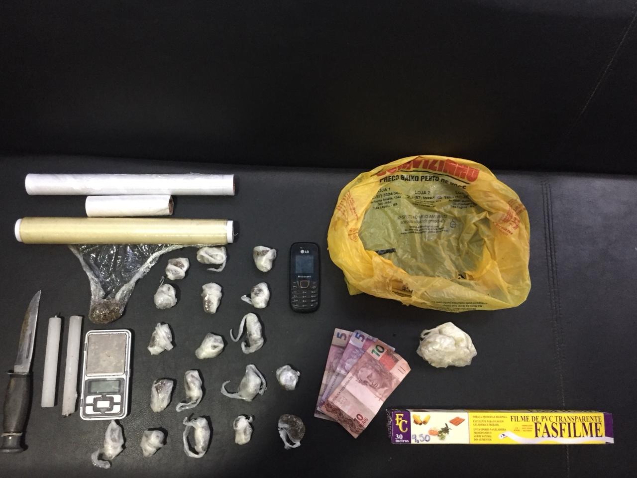 Com os indivíduos foram encontrados 19 porções de drogas, prontas para a venda.