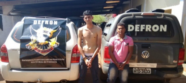 Lucas de Souza dos Santos, 23, residente em Dourados, e José Geraldo da Silva, 30, que mora no Assentamento Pana, em Nova Alvorada do Sul, foram presos pela Defron (Delegacia Especializada de Repreensão aos Crimes de Fronteira) na noite desta quarta-feira (16) com um utilitário Hyundai Tucson furtado.