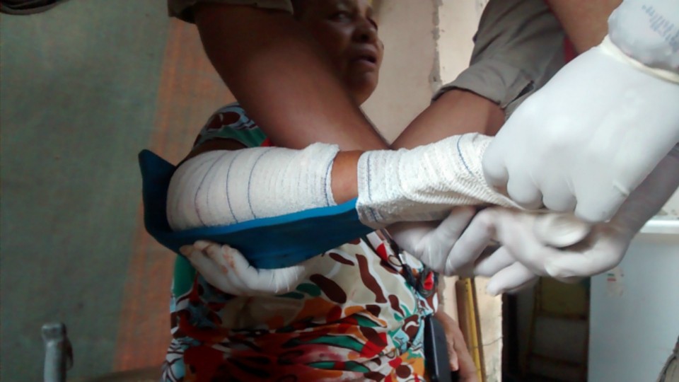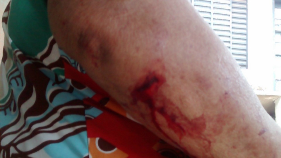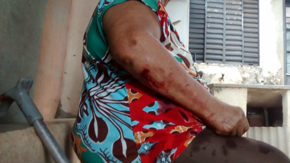 Dona Cleuza “taxista” foi atingida no braço direito sofrendo uma fratura decorrente do golpe além de um profundo corte no cotovelo.