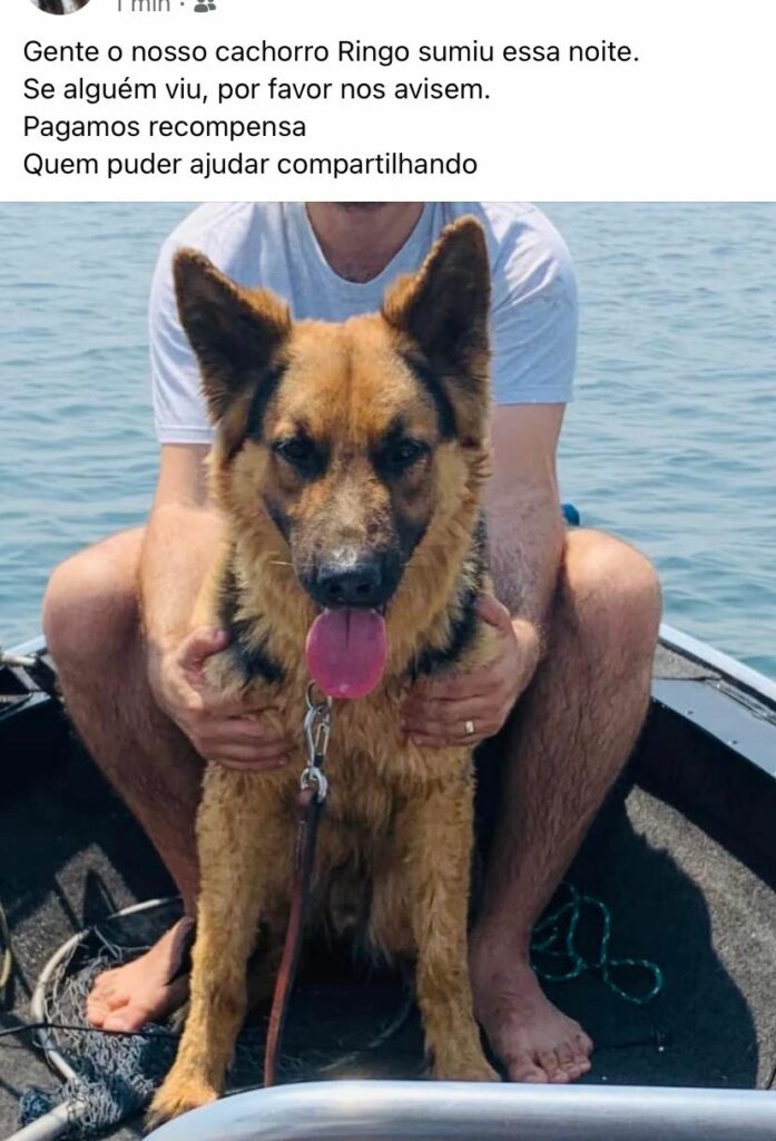 O cachorro, que atende pelo nome de “Ringo” desapareceu na rua Odonaldo Ferreira Dutra, próximo ao supermercado BigMart da Avenida Dr. Clodoaldo Garcia, e está usando um enforcador prateado e uma coleira de cor branca que é especifica para prevenção de carrapato.