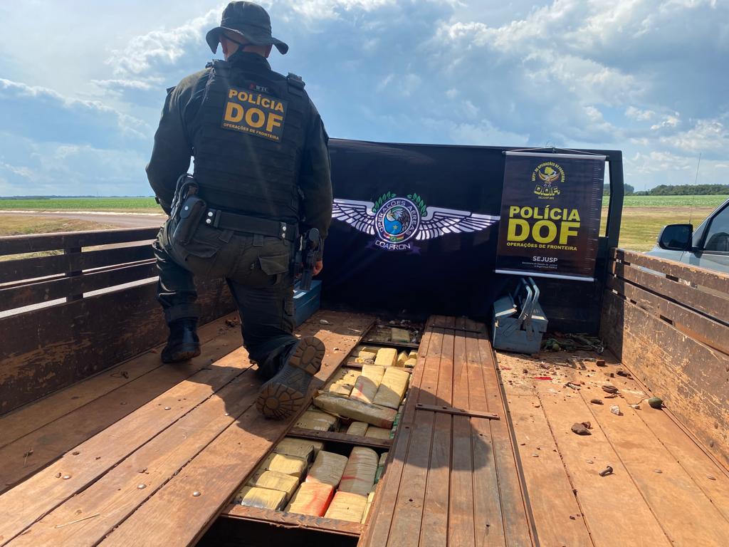O DOF (Departamento de Operações de Fronteira) apreendeu na tarde desta sexta-feira (02/12), na MS-164 em Maracaju, mais de 170 quilos de maconha escondidos em um fundo falso na carroceria de uma camioneta GM/D20.