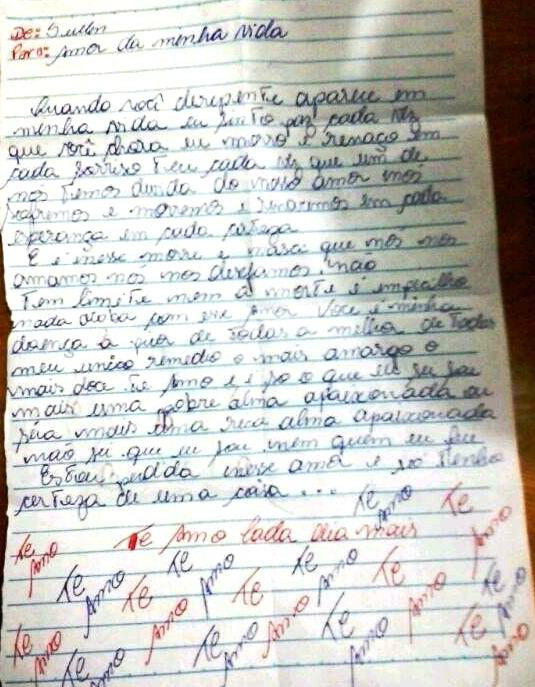 Com a encomenda, a polícia encontrou uma carta que tinha como autora uma mulher apaixonada de alcunha “Suelen”. A mulher endereçou o bilhete ao “Amor da Minha Vida”. Em um trecho, a mensagem diz: Estou perdida nesse amor e só tenho certeza de uma coisa…TE AMO…