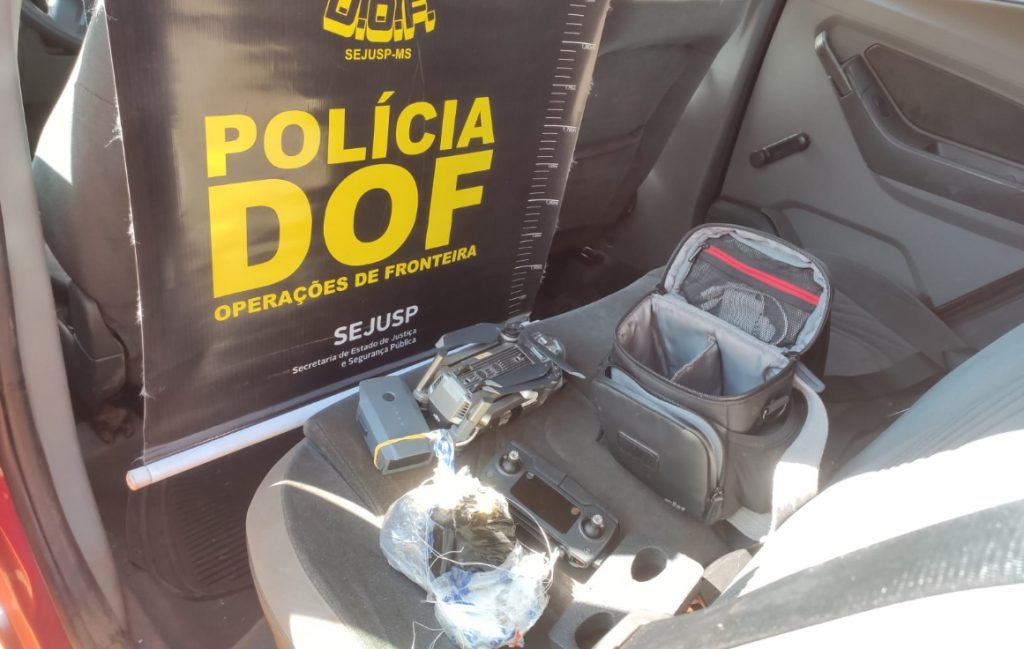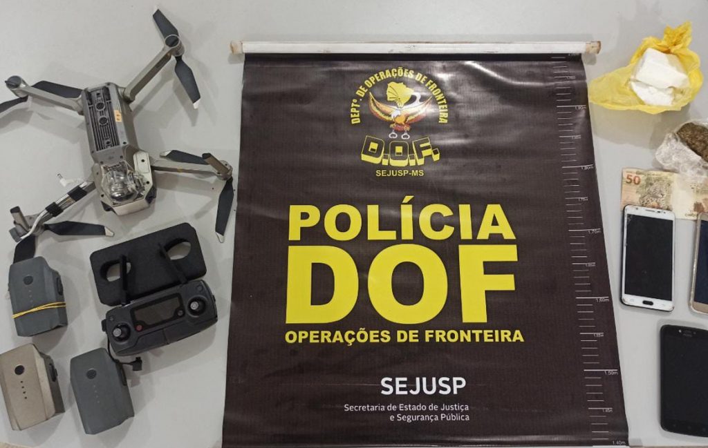 Policiais do Departamento de Operações de Fronteira (DOF) apreenderam, um drone com três baterias, três celulares e drogas que seriam entregues aos internos da Penitenciária Estadual de Dourados (PED).