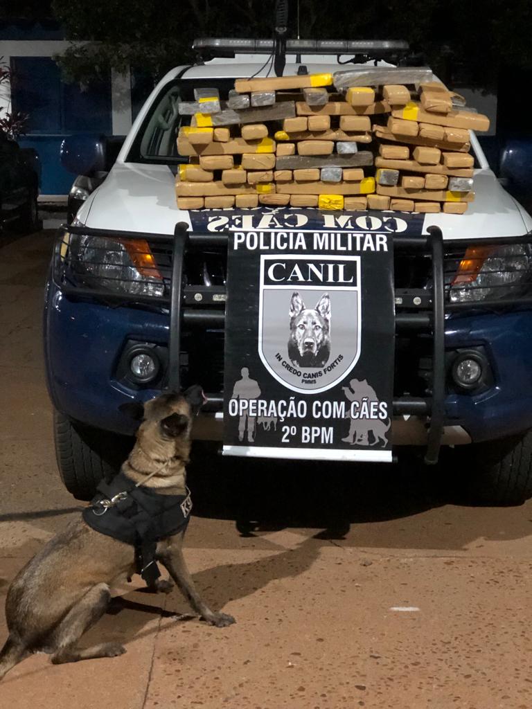 Com auxílio do Canil do 2°BPM, droga foi encontrada em bagagem das suspeitas.