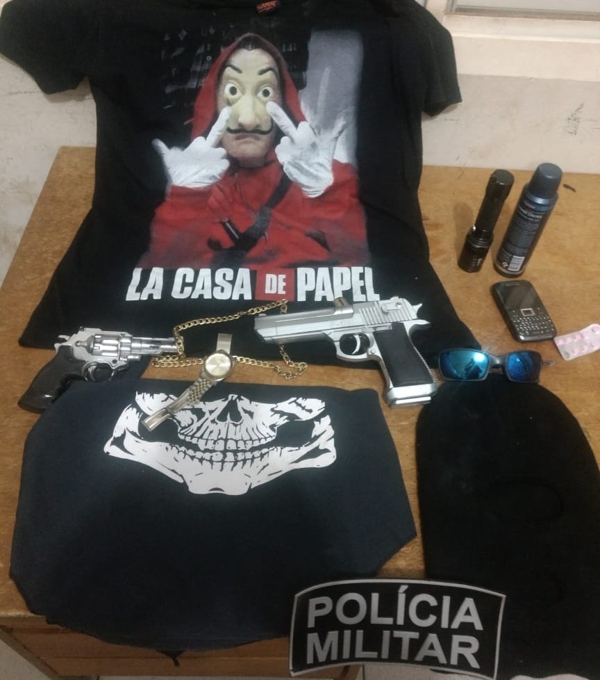 Com o outro autor, um simulacro de pistola foi localizado. Os rapazes ainda estavam com uma mochila, que continha uma touca ninja, uma bandana cobre rosto, diversas roupas, uma lanterna, um relógio de pulso, uma corrente e um celular.