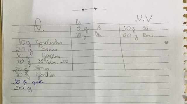 Duas folhas de caderno, com anotações sobre o tráfico, também foram apreendidas