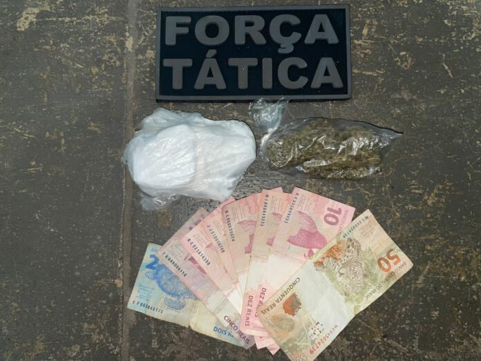 Por volta das 19h40, a guarnição da Força Tática localizou o veículo nas margens da BR-158, próximo ao Presídio de Segurança Média. Durante a abordagem, os policiais encontraram uma sacola contendo 108 gramas de cocaína e 34 gramas de maconha escondida no suporte da luz interna do carro.