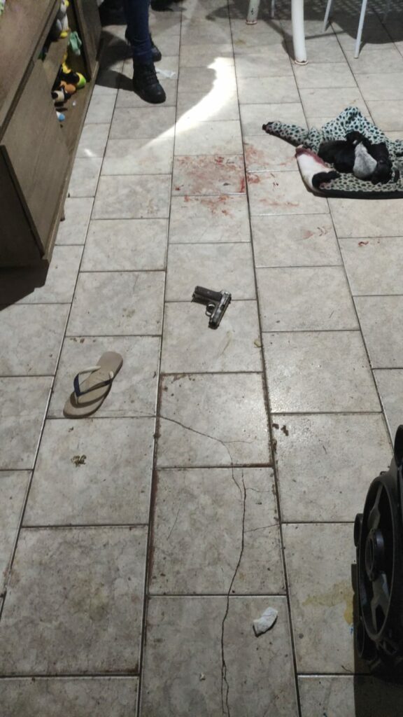 Diante do desacato, a equipe, ao desembarcar, confirmou que o embrulho era cocaína, e em continuação, um dos policiais se deparou com a suspeita retirando uma arma de fogo da cintura, dando ordem para que se desarmasse, onde foi necessário efetuar disparos para sua proteção. Outro policial, que entrou pelos fundos, foi surpreendido pelo homem de 21 anos, que estava com um revólver, onde também não obedeceu a ordem de que se desarmasse, sendo necessário atirar para que não fosse agredido. Ambos foram socorridos, mas não resistiram aos ferimentos.