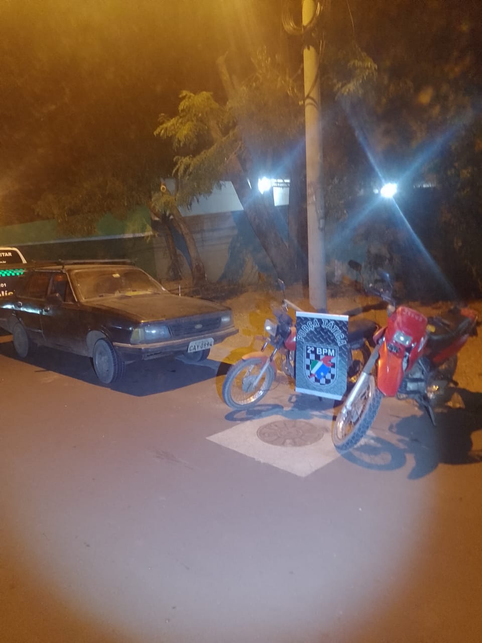 Na madrugada de hoje (30), por volta das 1h30, em patrulhamento pela estrada de acesso ao porto de areia, uma equipe da Força Tática abordou dois suspeitos que trafegavam em duas motocicletas, sendo uma Honda Titan 125 vermelha e uma Honda Bros vermelha, que apresentaram algumas contradições sobre de onde estavam vindo.