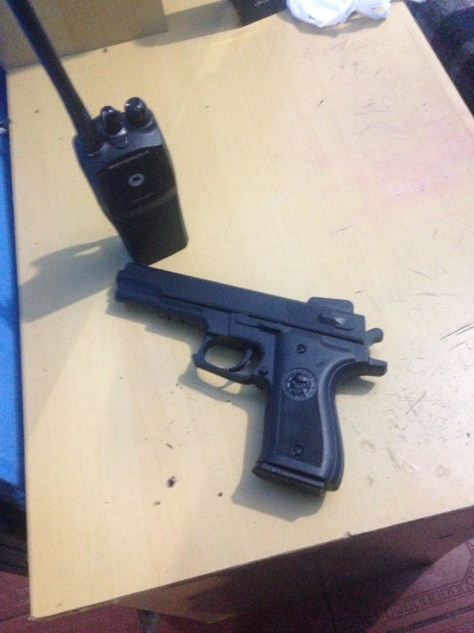 Durante a abordagem, foram apreendidos um HT, um simulacro de arma de fogo e a motocicleta utilizada no crime (fotos abaixo).