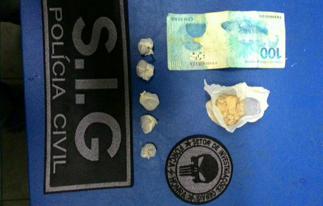 Os policiais conseguiram efetuar a detenção do jovem, e localizaram em meio a um dos tijolos do muro o invólucro que continha cerca de 9,1 gramas de “Crack”, o que segundo os policiais é o suficiente para produzir cerca de 27 porções para a venda.