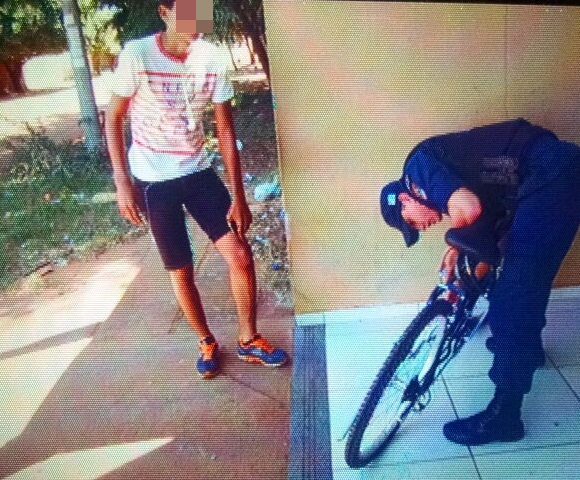 Segundo informações o adolescente de 14 anos foi até o local onde aconteceu o evento “Passeio Ciclístico” e em uma rápida ação empurrou e roubou um celular e uma bicicleta de um jovem de 16 anos que participava do evento.