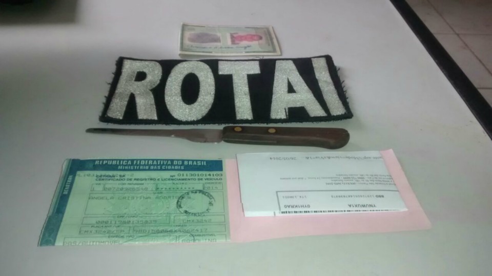 Foi encontrado com ele no momento da abordagem uma faca de mesa utilizada ,segundo ele, para ligar o veículo.