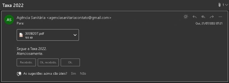 A Secretaria Municipal de Saúde (SMS), por meio da Vigilância Sanitária, informa que golpistas estão enviando e-mails para farmácias de Três Lagoas com um boleto em anexo, informando que seriam taxas referentes à licença sanitária 2022.