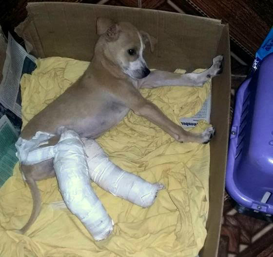 O cão, carinhosamente chamado de Valente, foi atropelado e teve as duas pernas quebradas, além de ter a pelve deslocada em um acidente ocorrido na última quarta-feira (10), no Jardim Tijuca II, em Campo Grande. O responsável pelo atropelamento estava em um carro e fugiu sem prestar socorro.