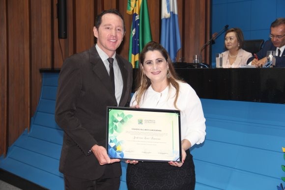 O mesmo é disposto pelo Regimento Interno da Casa de Leis. A homenagem foi entregue por Madiane Camargo, chefe de gabinete do deputado Eduardo Rocha, que não conseguiu desmarcar um compromisso fora do Estado, agendado antes da definição da data desta cerimônia.
