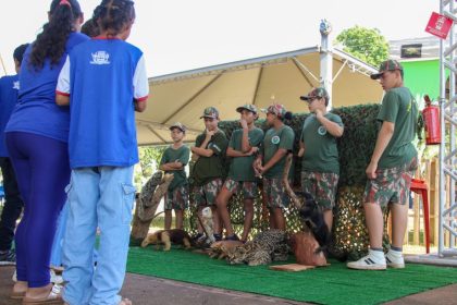 Durante a visita ao evento, que segue até o dia 2 de maio, os estudantes tiveram a oportunidade de conhecer uma exposição de animais taxidermizados organizada pela PMA, ampliando o aprendizado sobre a fauna regional. Os próprios integrantes do projeto Florestinha conduziram parte das atividades, apresentando informações sobre as espécies, como características, hábitos e comportamento no meio ambiente.