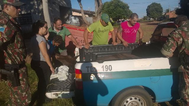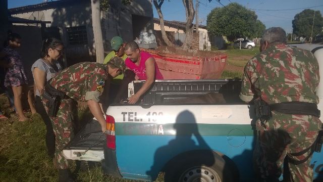 Por falta de local público adequado, a égua foi levada para uma chácara onde passará por tratamento. Ela corre risco de morte. Também por não ter na administração pública municipal o transporte adequado, os policiais improvisaram em um veículo de pequeno porte.