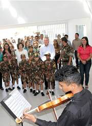 Os equipamentos, que estão sendo utilizados desde março por mais de 1,6 mil alunos das Orquestras de Violeiro e Sinfônica da cidade, nos 36 cursos oferecidos pela secretaria, foram repassados oficialmente hoje e a cerimônia contou com apresentação musical de cinco jovens, utilizando os instrumentos doados.