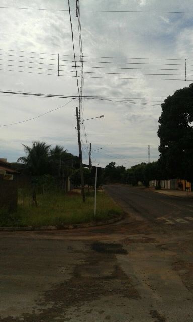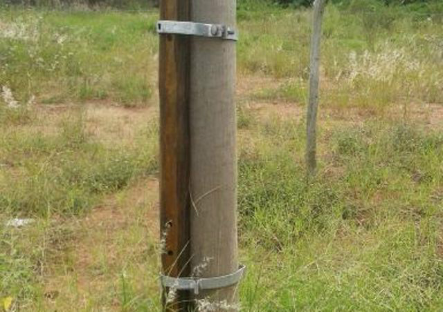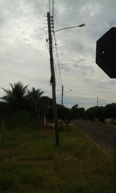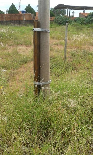 O poste de eucalipto que há algum tempo está bambo e pendendo para a esquerda, ganhou uma trave de madeira para reforçar sua estrutura.