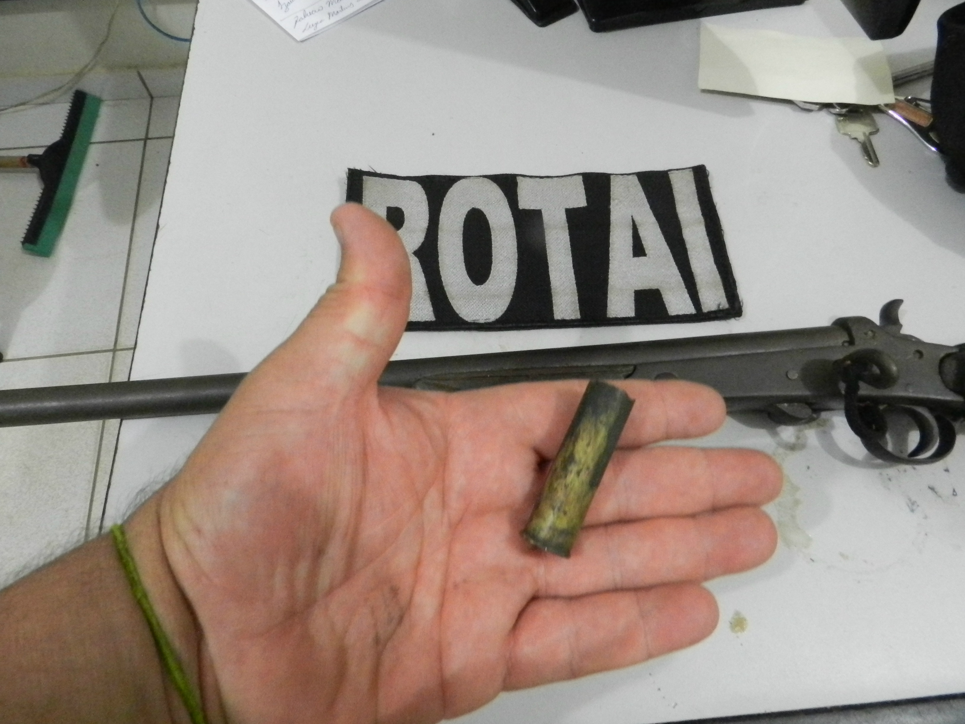 Na diligência ao imóvel indicado, a Rotai localizou ao lado do fogão uma espingarda calibre 32 com um cartucho deflagrado